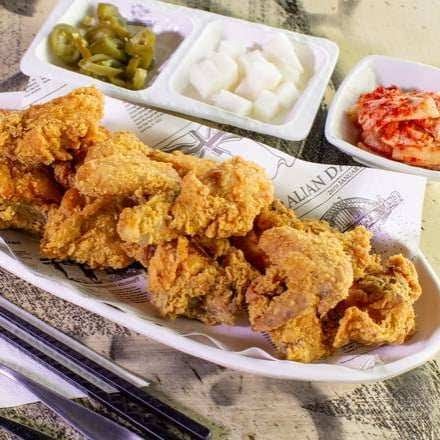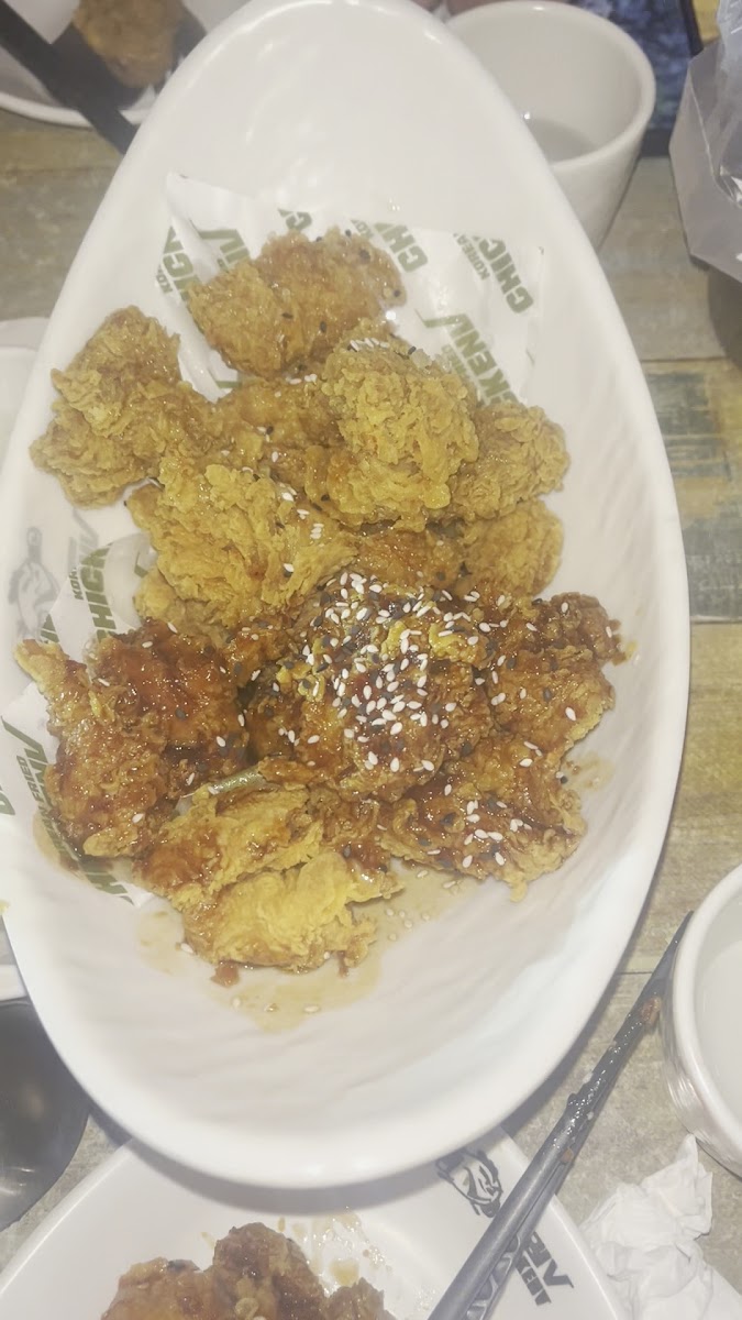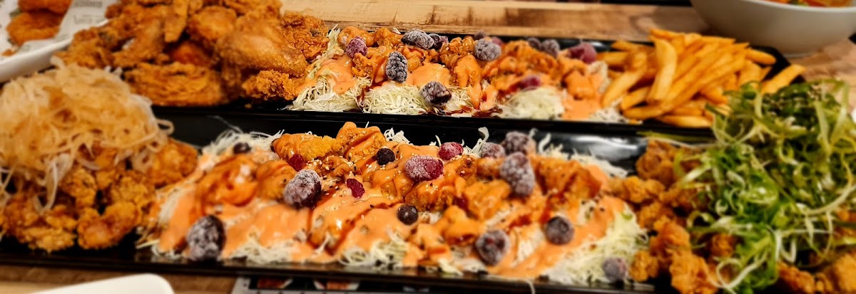 This place makes very tasty Korean fried chicken with excellent customer service. I pre-ordered one whole fried chicken and half a sweet chilli chicken right after they opened for dinner and picked it up about 1.5 hours later. The male staff member was very kind and had my order ready exactly on time. My guests were pleasantly surprised by the crunchiness and flavour of the chicken. I would definitely recommend this place if you’re hosting guests who would like to try authentic Korean fried chicken.