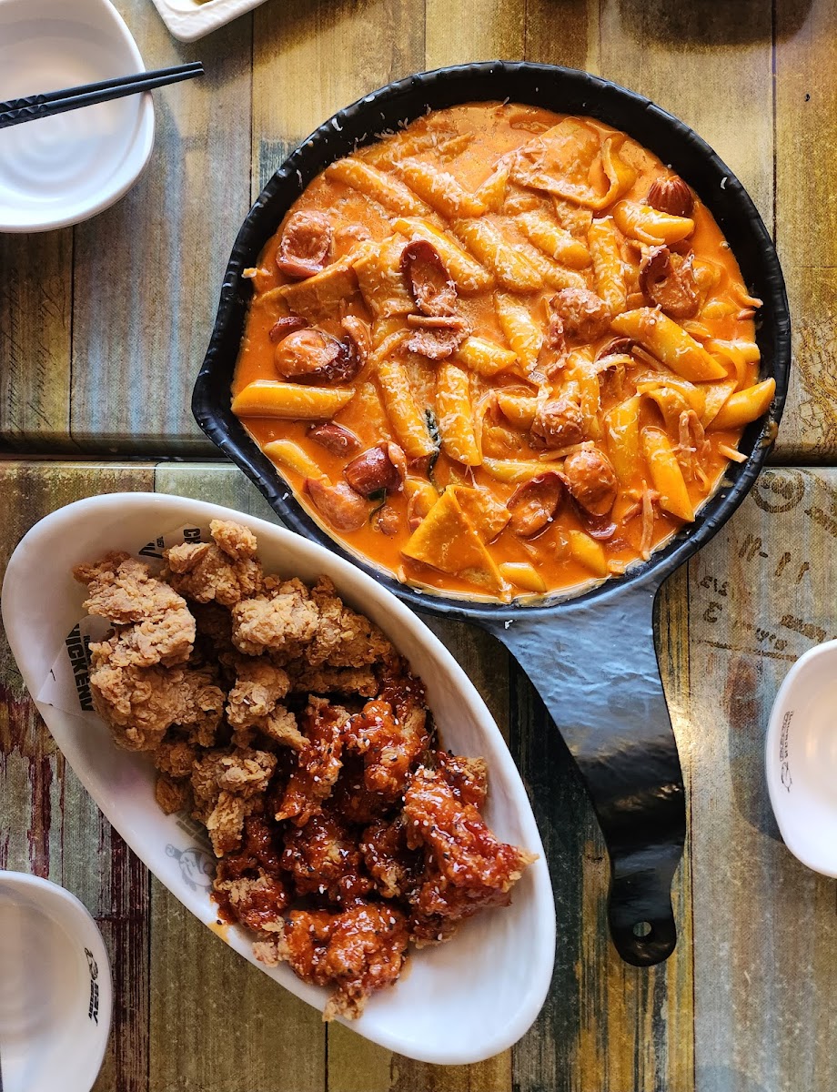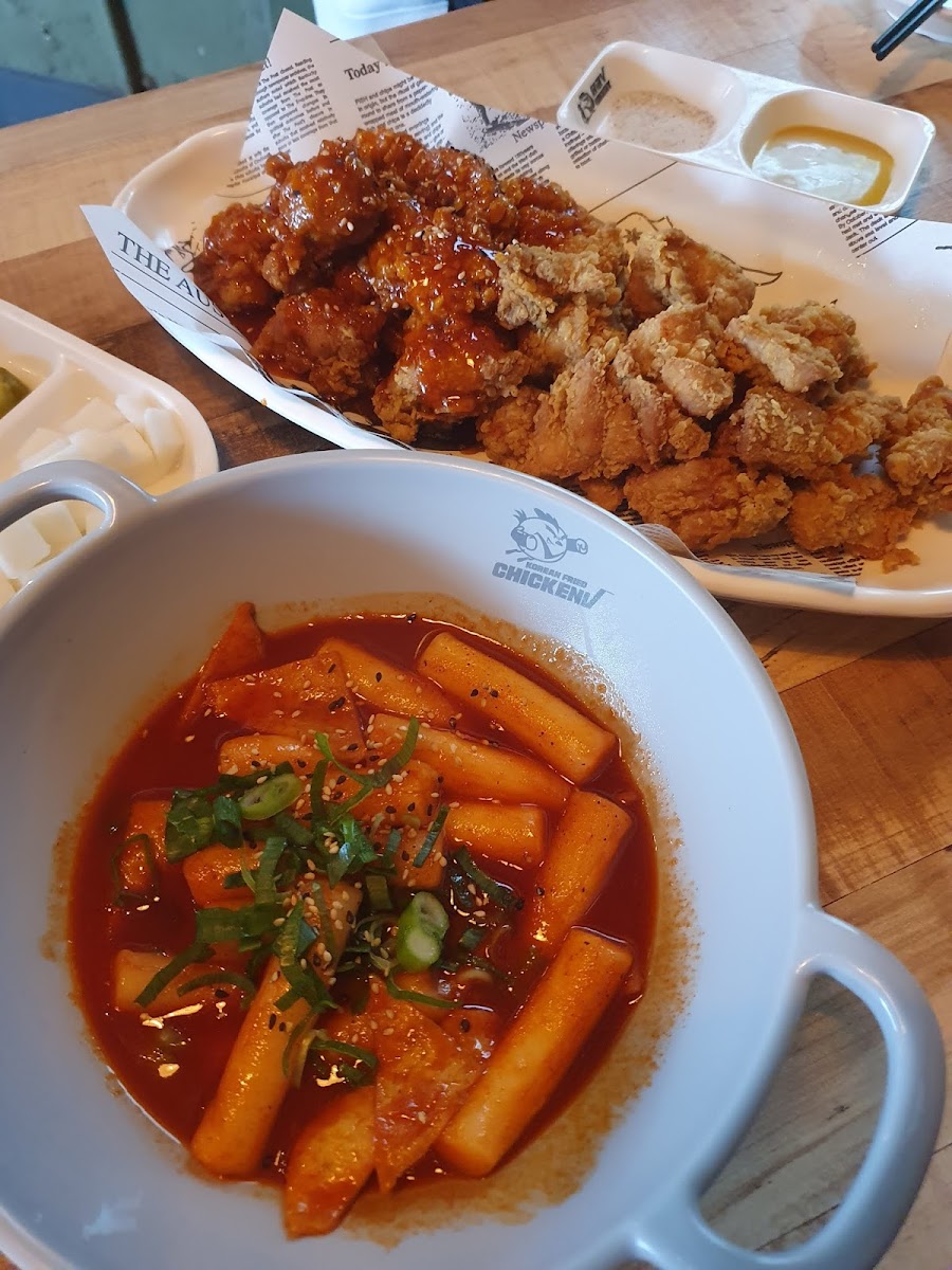 Amazing Korean fried chicken joint. We got a seat immediately and the food came out quick. The prices were reasonable and the portions were massive. I would highly recommend the crazy spicy sauce if you want a bit of heat and the corn cheese. It’s got such a nice toasty flavouring to the cheese which makes it so tasty. The chicken was fresh tender and very juicy. We also got jaja ramen and tteokboki to round out the dishes. Will definitely be back if we have another craving for Korean fried chicken.